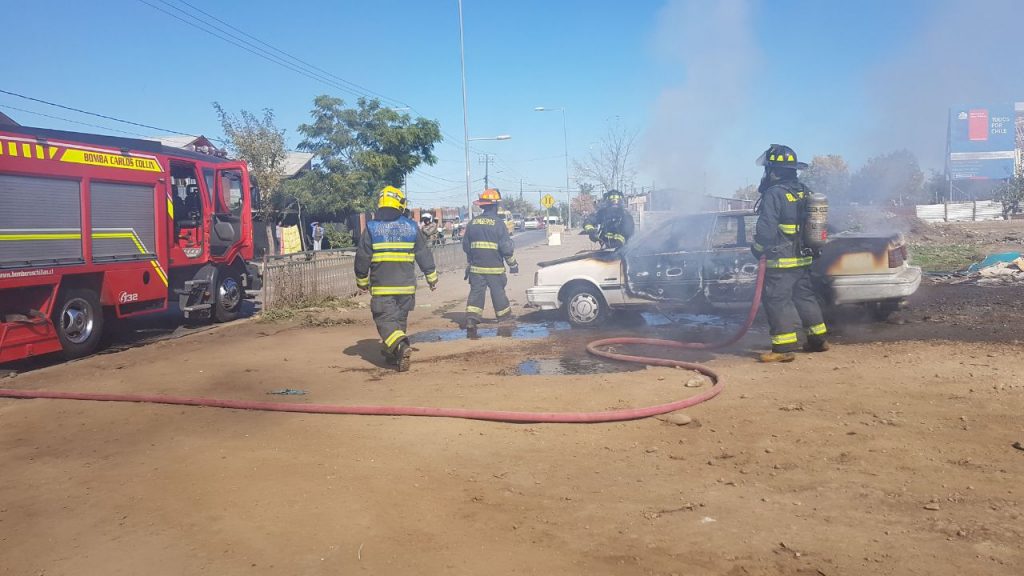 Efectivos bomberiles de la segunda Compañía llegaron frente a Villa Los Almendros (Las Habas) lugar en que un auto ardía en llamas.