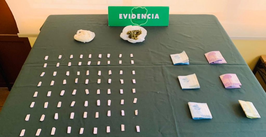 Las técnicas investigativas permitieron a la Sección Drogas comprobar y acreditar el ilícito, y registrar el inmueble, donde incautó 63,2 gramos de pasta base de cocaína y 17,9 gramos de marihuana elaborada.