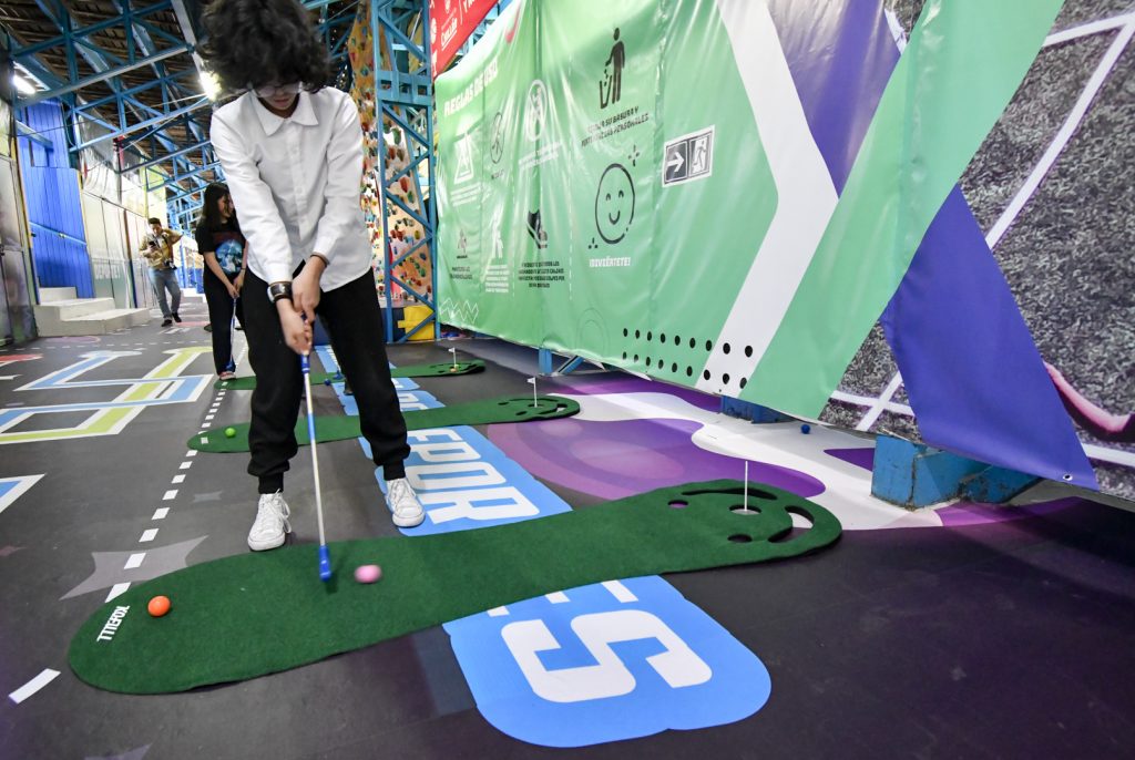 El espacio ubicado en la Casa del Deporte, recientemente inaugurado, permitirá que niños y niñas desde los 4 a los 11 años puedan jugar y aprender en torno a la actividad física, y fortalecer sus habilidades motrices, a través de muros de escalada, campo de mini golf y obstáculos ninja, entre otros.