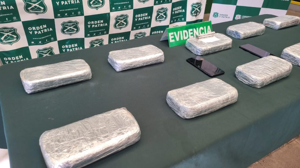 Este fin de semana, Carabineros del OS7 Ñuble detuvo a una pareja que circulaba en su vehículo transportando 10 paquetes contenedores de clorhidrato de cocaína.