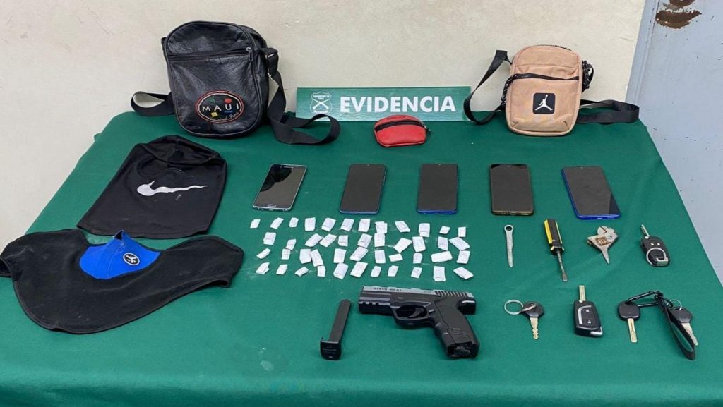 «Los sujetos habrían estado en el vehículo en primera instancia, y luego en actitudes sospechosas con la vivienda. Con la oportuna alerta, Carabineros llegó al lugar, pudo fiscalizarlos e incautarles un pistola de aire compromido similar a una real, diversas ganzúas, teléfonos celulares y llaves de vehículos, además de un banano con dosis de pasta base», explicó el Subcomisario de la 2ª Comisaría Chillán, Capitán Marco Gaete.